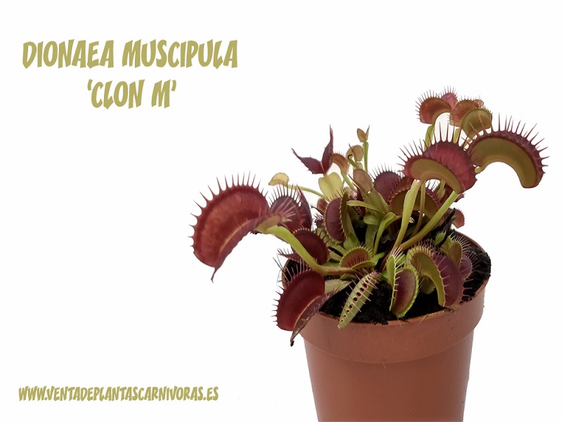 Planta Dionaea muscipula ‘clon M’ tamaño 4-7 cm diámetro. Clon producido por Plantas Carnívoras España que se caracteriza por sus grandes trampas y crecimiento vertical en verano.